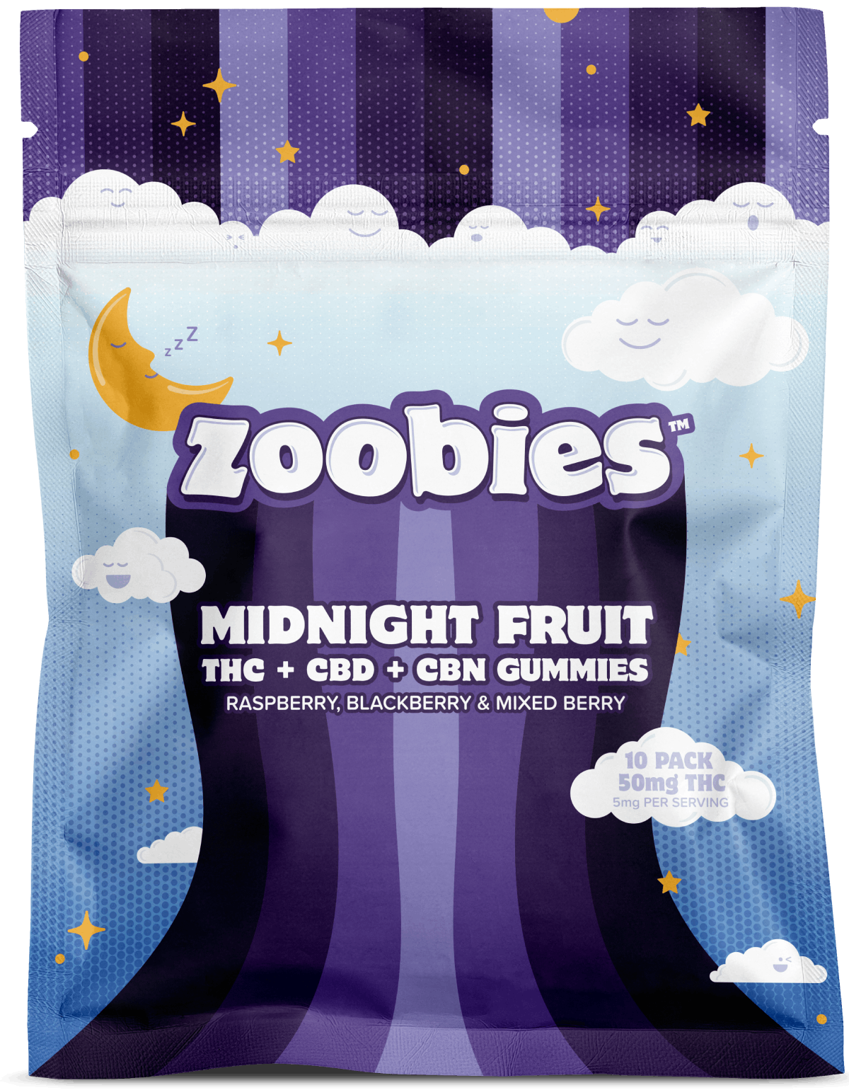 Drift off in a cloud of restful sweetness. These mixed fruit gummies blend THC, CBD, and soothing CBN (5 mg each per gummy; 50 mg total) in perfect harmony, delivering gentle relaxation, easeful sleep, and the softest mixed berry flavors—perfect for bedtime or unwinding. Made from THC Distillate, Glucose Syrup, Sugar, Gelatin, Pectin, Citric Acid, Natural and Artificial Flavors, Coconut Oil, Natural Colors.